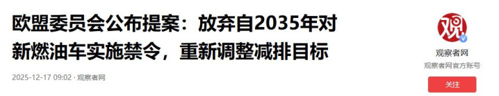 16号,欧盟委员会公布了一项提案计划,在欧洲汽车行业承压之下,他们决定放弃自2035年对新燃油车实施的实际禁令。对此事,英媒毫不客气地指出,这标志着欧盟近年来在绿色政策方面所作出的“最大退让”。